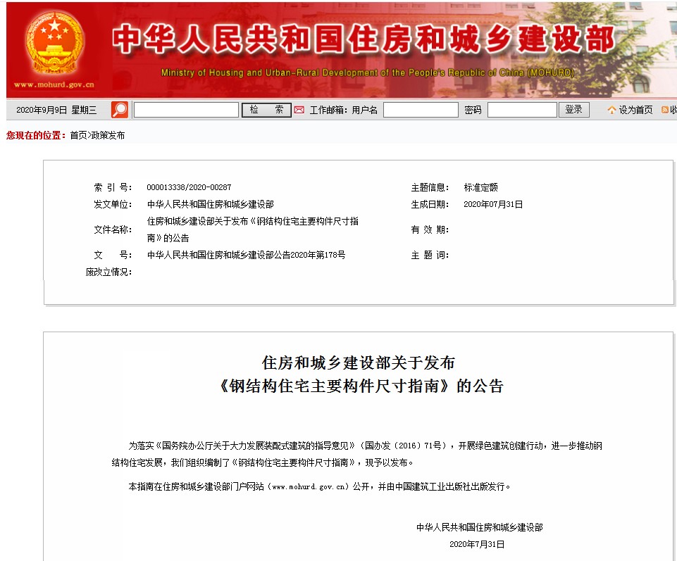 為落實(shí)《國(guó)務(wù)院辦公廳關(guān)于大力發(fā)展裝配式建筑的指導(dǎo)意見(jiàn)》、開(kāi)展綠色建筑創(chuàng)建行動(dòng)、進(jìn)一步推動(dòng)鋼結(jié)構(gòu)住宅發(fā)展,住房和城鄉(xiāng)建設(shè)部組織編制了《鋼結(jié)構(gòu)住宅主要構(gòu)件尺寸指南》,并于日前印發(fā)。